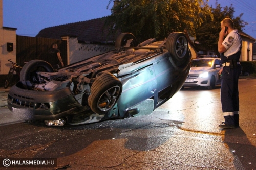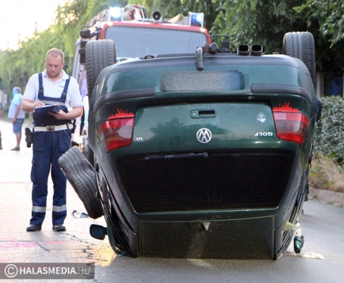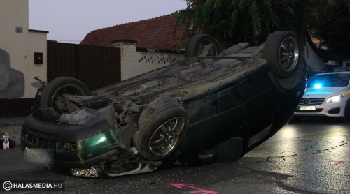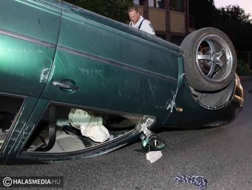 • 2024.07.16. -Felborult egy VW a Szász Károly utcán, a sofőr ittasan ült volán mögé (Jáger Levente)