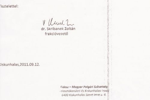 • 2011.09.14. - Skribanek Zoltán levele
