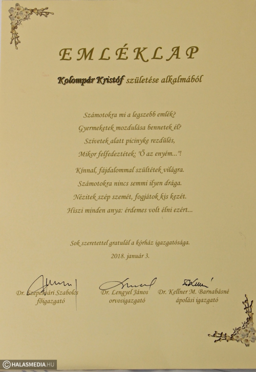 • Az év első halasi babáját köszöntötték (Jáger Levente)