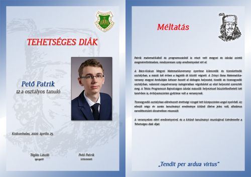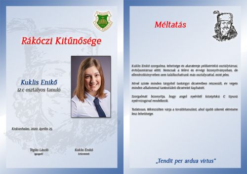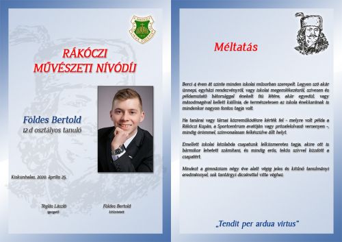 • 2020.04.25. - Ők érdemelték ki a II.Rákóczi-gimnázium kitüntetéseit