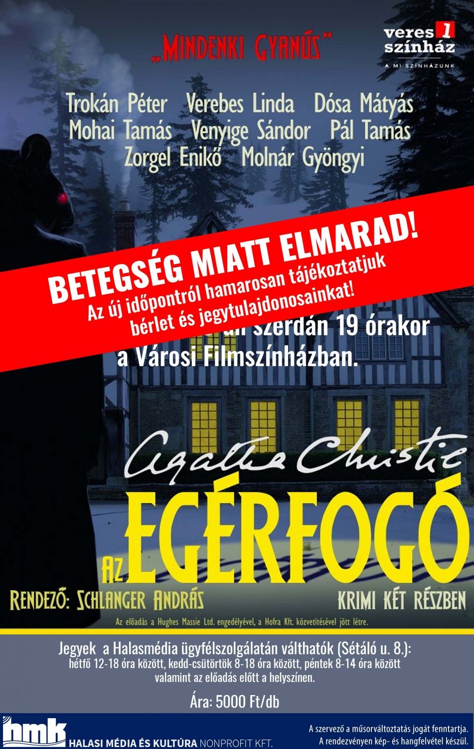 A fiatal Ralston-házaspár panziójában vagyunk. Távol az emberektől, a világtól. Abban a zárt játéktérben, a hótorlaszok közé ékelt, bűnügyi laboratóriumban, amelynek az írónő, szokás szerint, még a telefonvezetékét is elvágta. Egyelőre csak azt tudjuk, hogy a Culver utcában megöltek egy nőt. Aztán sítalpakon megérkezik Trotter, a nyomozó. S kiderül, hogy a gyilkosnak a panzió lakói között kell lennie. Agatha Christie sorra elénk idézi a szereplőket, s külön-külön mindegyikről bebizonyítja, hogy - tévedés kizárva! - csak ő, egyedül ő lehet a gyilkos! De mi tudjuk, hogy a sok ártatlan között egyetlen vétkest kell keresnünk. Így a harmadik leleplezésnél kétszer érezzük becsapva magunkat, a negyediknél háromszor, és így tovább… Az író egyik kelepcéből a másikba csal, hogy aztán - miután kiengedett a szabadba - önként fussunk be a legnagyobb kelepcébe… Két és fél órás elme-torna. Színpadi matematika. Csiki-csuki játék. Könnyű mulatság, amelyről a közönség abban a tudatban távozik, hogy lám, megint túljártak az eszén…