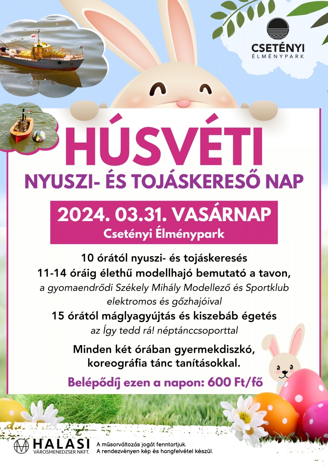 Húsvéti nyuszi- és tojáskereső nap a Csetényi Élményparkban