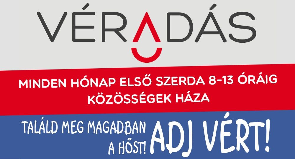 Véradás minden hónap első szerdáján a Közösségek Házában (Kiskunhalas, Sétáló u. 8.).
