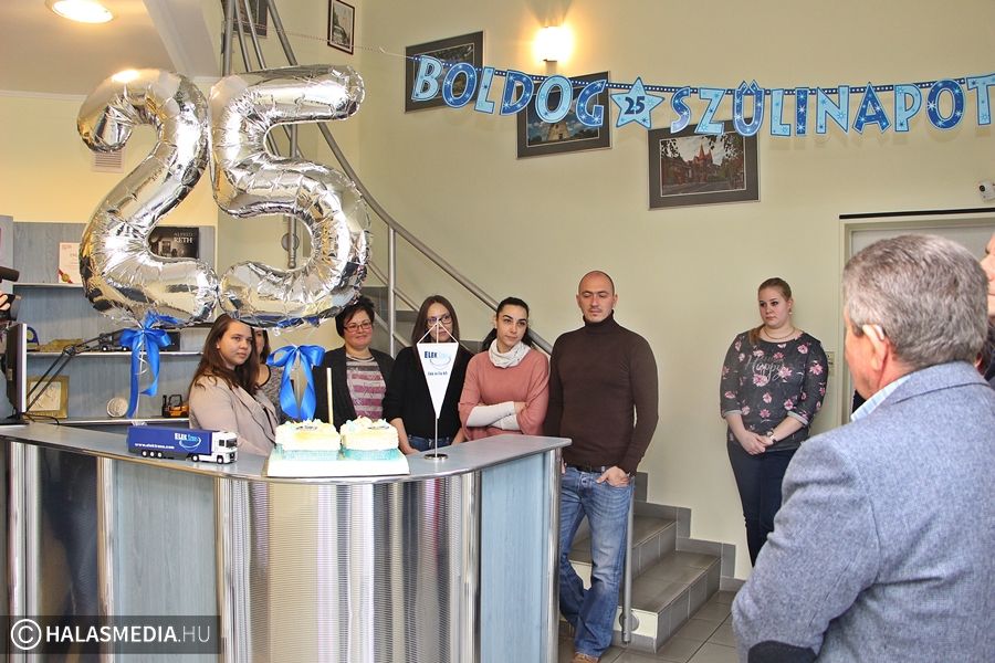Kollégái lepték meg hétfőn délelőtt a kiskunhalasi Elektrans Elek és Fia Kft. ügyvezetőjét annak apropóján, hogy éppen 25 évvel ezelőtt, 1995. január 10-én alapították meg a céget. A kis ünnepség keretében a jelenlévők közösen idézték fel a cég elmúlt két és fél évtizedét.
