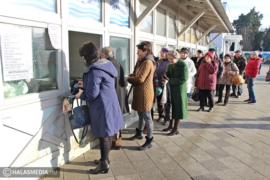 - A halászlé, a rántott és sült hal elmaradhatatlan nálunk karácsonykor. Sajnos év közben nem eszünk halat, mert eléggé megdrágult az utóbbi években. 4-5 ezer forintot hagytunk most is a pénztárnál, de évente egyszer megengedhetjük magunknak ezt a finomságot – mondta Laczi György, aki Kisszállásról jött Halasra halat venni.