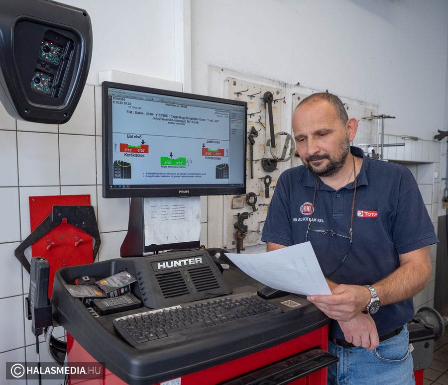A Hunter futómű-diagnosztika a világszínvonalat képviseli – nyilatkozta Balaskó István. A Hunter vizsgálati rendszer jelentősen felgyorsította a futómű-kontrollt, amely a szerelőknek és az ügyfeleknek is átlátható képet kínál azonnal a jármű állapotáról. A múlt század elején alakult amerikai vállalat által kifejlesztet Hunter futómű-diagnosztikai rendszerek folyamatos fejlesztéseken estek át. Manapság a korszerű Hunter futómű beállító rendszerek a tökéletes kerékbeállítás érdekében informatikai eszközökkel, a kerékre szerelt műszerek vetített fénysugarait használva diagnosztizálnak. A KB Autoteam Kft. az NKFI alapból megvalósult 2021-ben elnyert pályázati programnak köszönhetően helyezte üzembe a Hunter Hawkeye Elite™ Prémium kerékbeállító rendszert. Balaskó István, a KB Autoteam Kft. Autószervizének vezetője, mint projektvezető csak jót tud mondani az elmúlt két esztendő során tapasztaltakról.