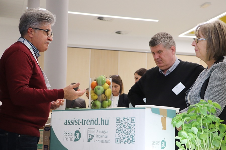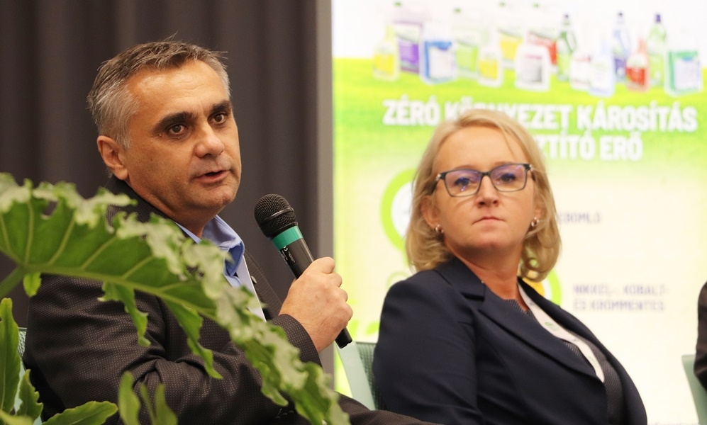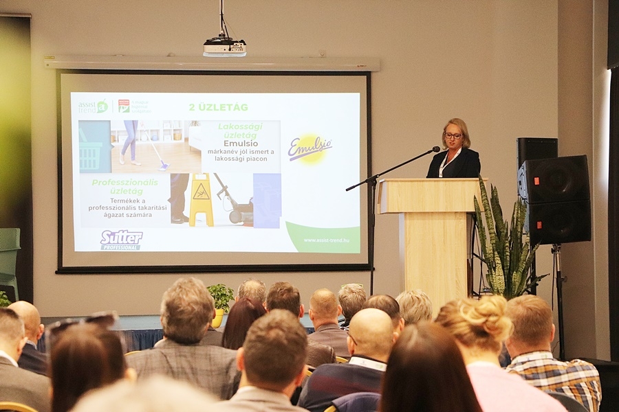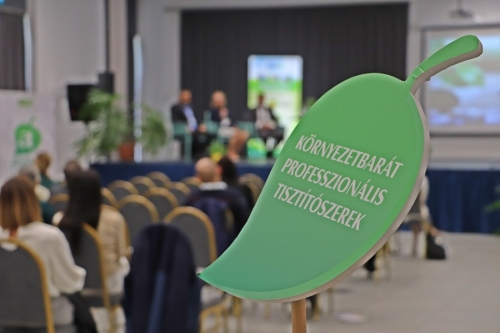 Kardos György kereskedelmi projektvezető gyakorlati példákon keresztül szemléltette a környezetbarát tisztítószerek eredményességét, valamint beszámolt az épülethigiénia nagyobb kihívásai (mélygarázsok, irodaépületek, közösségi szociális helyiségek) megoldásairól is.