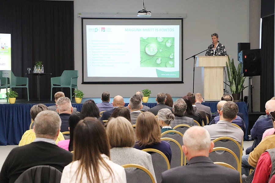 Most még ez az ESG szemlélet alapvetően jogszabály szerint és törvény szerint csak a nagyvállalkozásokra kötelező, de szépen lassan a nagyvállalkozók beszállítóira, a beszállítók beszállítóira is vonatkozni fog. Tehát az a kisvállalkozás, aki ma az Alföldön valamelyik nagyobb cégnek szállít be terméket vagy szolgáltatást, ő is kell, hogy ezt a szemléletet a magáévá tegye. E cég vezetője a mindennapi munkájában és a kollégái felé a mindennapi gondolkodásmódban ezt az ESG szemléletet kell közvetítse” - fogalmazott előadásában Mártonné Máthé Kinga Assist-Trend Kft. fenntarthatósági szakembere.
