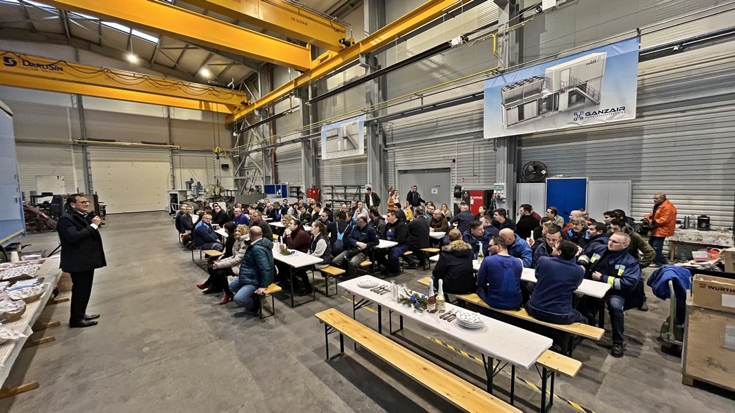 Gidai Olivér a csarnokbejárást követően egy évértékelőt is tartott a munkatársainak. beszámolójából kiderült, hogy a Ganzair mindig is gyorsan reagált a külső változásra, hamar vált módszert, ahhoz hasonlóan, ahogy új technológiát (levegő, földgáz sűrítése után; a zöld hidrogéntermelés és -tárolás) is bátran tanul meg. Ezáltal nem csak ellenállóbb a vállalkozás, stabil munkahelyet teremtve közel 100 munkatársának immár több mint harminc éve, hanem reális célként fogalmazhatja meg a cég, hogy egy magyar vállalkozás felkerüljön a világ hidrogéntechnológiai gyártói térképére a közeljövőben.