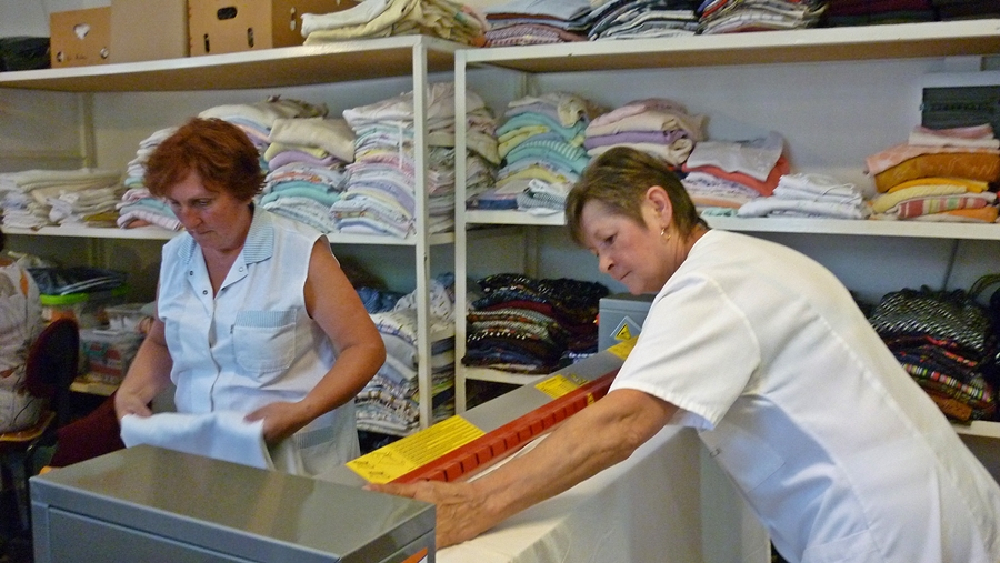 Egyszerre 12 kiló ruhát tud kimosni az új gép és a reggeli munkakezdéstől - a régebbi gépekkel együtt - egészen a munkaidő végéig folyamatosan dolgozik, hiszen rengeteg a mosnivaló az otthonban. A vasalógép is óriási segítség, ezzel óránként akár 100-120 darab lepedőt, vagy ágyneműhuzatot is ki lehet vasalni – mondja Víg Ibolya, a mosodai részleg munkatársa. A mosodafejlesztés némi átalakítással is járt az intézményben, de eddig kedvezőek a tapasztalatok. A több mint 3 millió forintos beruházás mellé állt az önkormányzat is.