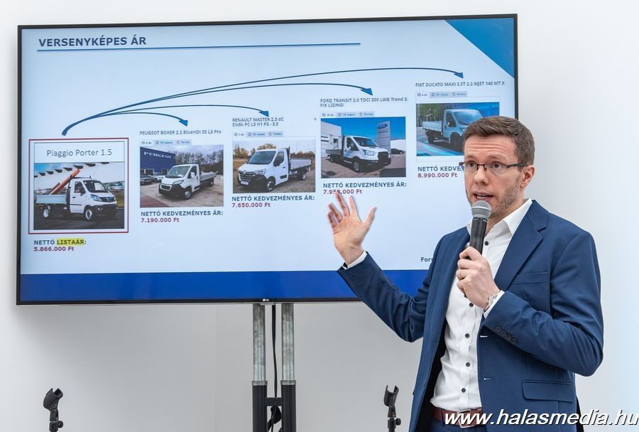 A Piaggio Porter NP6 modelleket Halason is elérhetik az érdeklődők. A tájékoztatón a KB Autoteam Kft. ügyvezetője, Juhász Tibor vett részt, Vékony Melindával, a Fiat és Jeep Márkakereskedés szalonvezetőjével. Kiskunhalason, a Keceli út 19-23 szám alatt található KB Autoteam Kft. telephelyén már kiállították a Piaggio Porter NP6 modelleket, amelyeket szerdától hivatalosan forgalmaz az autókereskedelemben 25 éve jelenlévő vállalkozás.