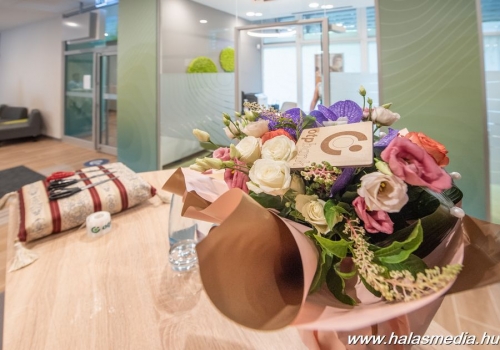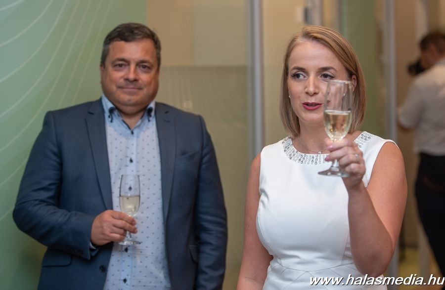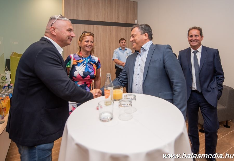 A köszöntő beszédek után Lengyel Kiss Aliz, az OTP Nyrt. Kiskunhalasi Fiókjának vezetője kérte meg Bányai Gábor és Windheim József urakat, hogy legyenek segítségére az ünnepélyes átadót jelképező OTP-s emblémákkal ellátott díszszalag átvágásában (címképen). A fiókvezető minden résztvevőnek megköszönte a megjelenést és pezsgős koccintásra, majd állófogadásra invitálta a vendégeket az ügyfélváróban kialakított alakalmi vendéglátóhelyen.