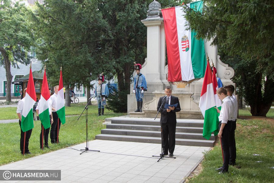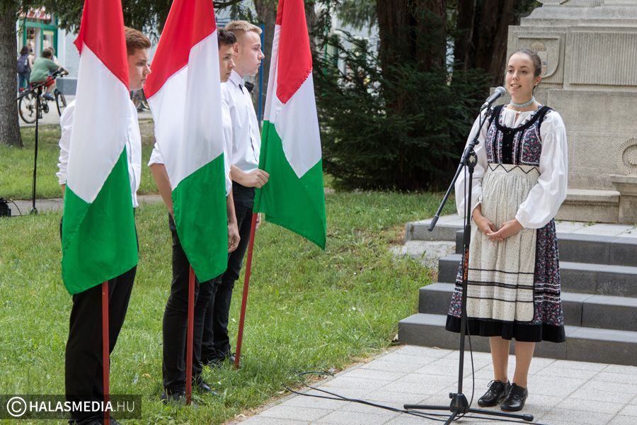 A Bibó István Gimnázium diákjai és pedagógusai szerkesztették és adták elő emlékező műsorukat az Országzászlónál a Nemzeti Összetartozás Napján. Arra emlékeztek, hogy éppen 98 évvel ezelőtt írták alá a trianoni békeszerződést, mely az egykori Magyarországot darabjaira szakította szét.