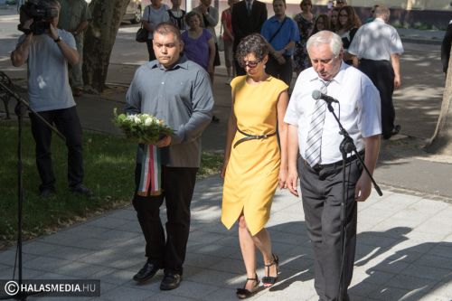 A megemlékezés koszorúk, virágok elhelyezésével zárult az Országzászlónál.