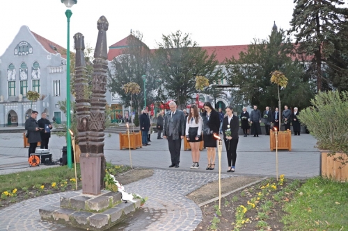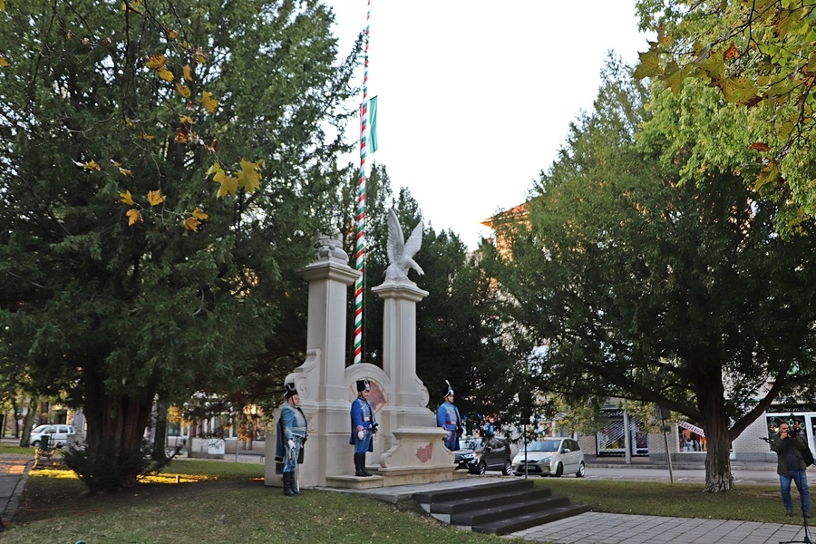 November 4-én, délután 4 órakor az Országzászló emlékműnél a Kiskunhalasi Lovasbandérium tagjai álltak díszőrséget. A forradalom jelképének, a lyukas zászlónak a levonása közben a megemlékezők közösen énekelték el nemzeti Himnuszunkat, majd átsétáltak a Bethlen Gábor téri kopjafához, a megemlékezés fő helyszínére.