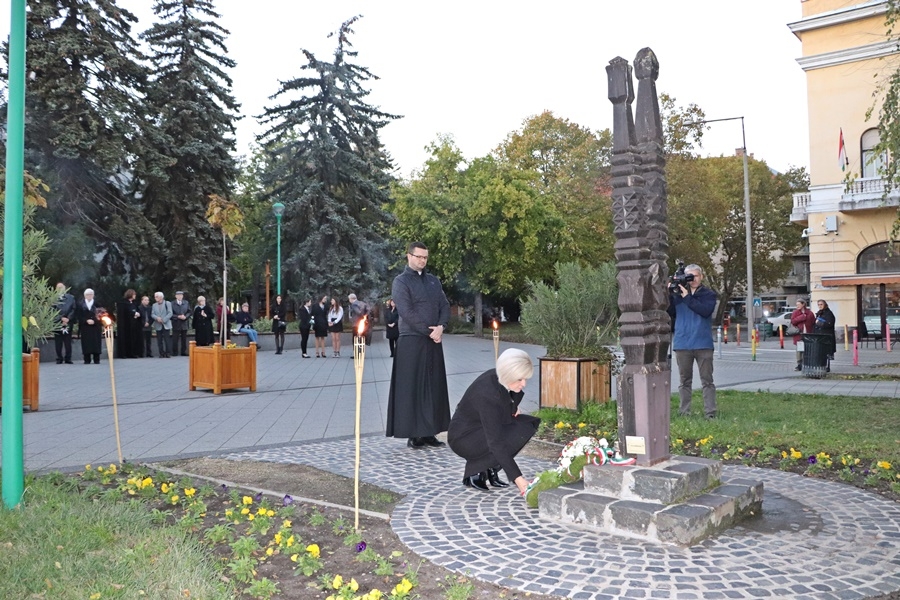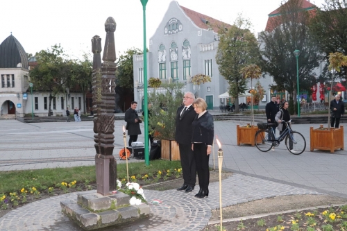 Kiskunhalas képviseletében Kuris István László alpolgármester helyezett el koszorút a kopjafánál. Ezt követően a pártok, civil szervezetek és intézmények vezetői is lerótták tiszteletüket az emlékműnél.