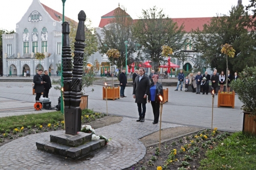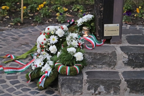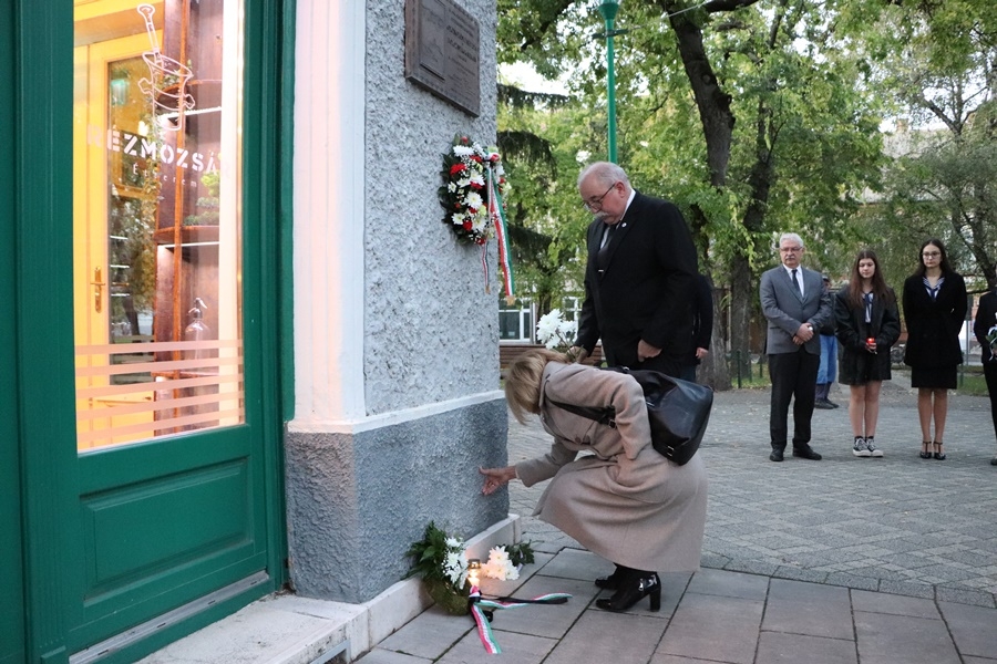A főtéri kopjafától pár méterre, a Városháza sarkánál található két halasi áldozat, Gyöngyösi Papp Ida és Poloznyik Kálmán emléktáblája. 1956 október 27-én veszítették életüket egy sortűz során. A mai esemény zárásaként, emlékükre helyeztek el mécseseket és koszorúkat a jelenlévők.