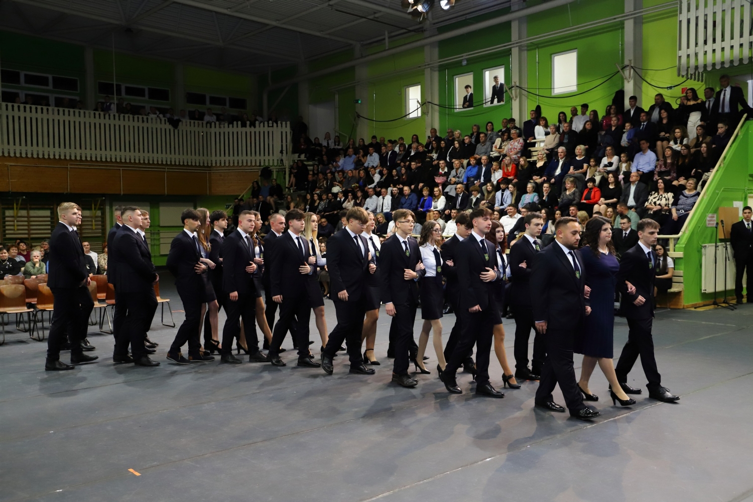 Jeles ünnepség helyszíne volt szombaton este a Dékáni-sportcsarnok. A hagyományoknak megfelelően ott rendezte meg a II. Rákóczi Ferenc Katolikus Gimnázium és Technikum a szalagavatóját. A teljesen megtelt lelátók és széksorok közönsége láthatta, hogy elsőként a 12.d érkezett meg a csarnokba, Kiss Hajnalka osztályfőnök vezetésével. Őket követte a 13.c (osztályfőnök: Sütőné Mohos Anita), a 13.b (osztályfőnök: Mándics Ildikó), majd a 13. a osztály (osztályfőnök: Pap Andrea).