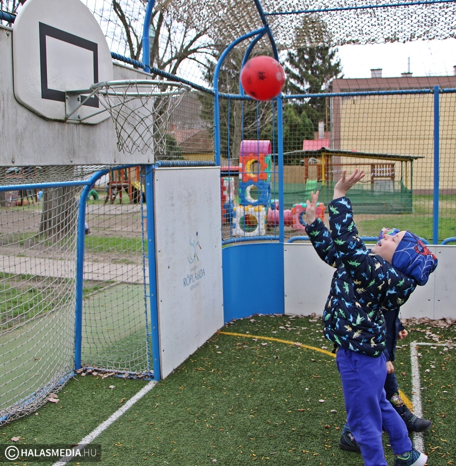 Természetesen az óvoda vezetősége arra is odafigyel, hogy a benti programok mellett, a szabadtéri játékra is mindig maradjon idő. A tágas udvar lehetőséget nyújtott arra is, hogy néhány éve egy műfüves pályával gazdagítsák az óvoda kínálatát.