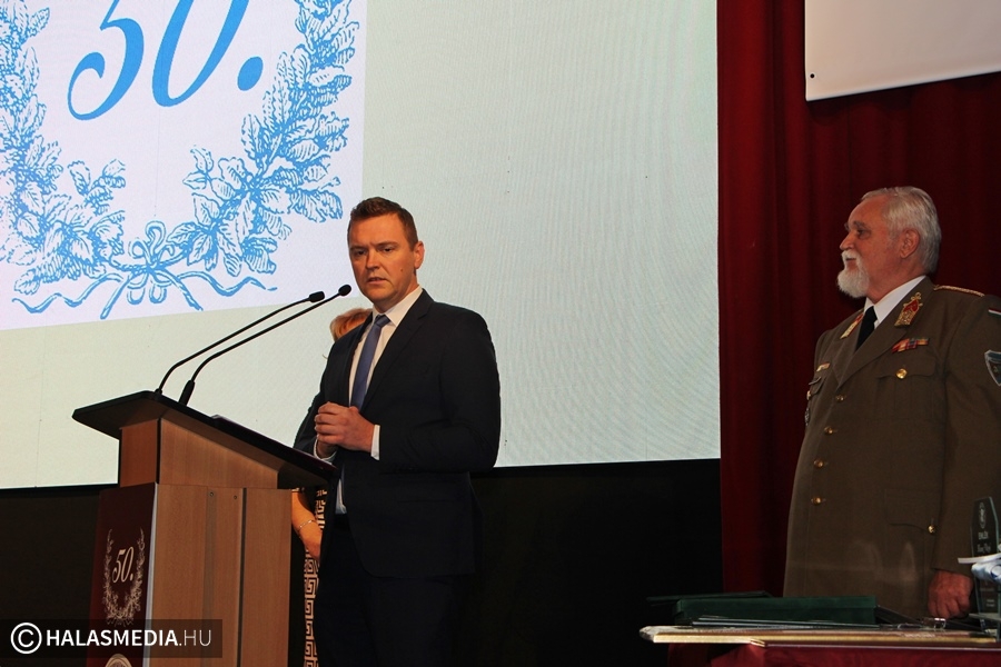 - Összességében szerény lehetőségeinkhez képest igyekszünk városunk és a kistérség hagyományőrző, kulturális vérkeringésében részt venni. Továbbra is megteszünk mindent annak érdekében, hogy emlékezzen rá az utókor, miszerint Kiskunhalas hosszú évtizedeken keresztül katonaváros volt- fogalmazott ünnepi beszédében az egyesület elnöke, Romvári Frigyes. Az egyesület vezetője megemlékezett az elődökről, akik sokat tettek a közösség építéséért. Fülöp Róbert polgármester köszönetet mondott a Kuruc Vitézeknek azért, hogy aktívan részt vesznek a város életében. Hazuga Károly nyugalmazott altábornagy szerint 50 év nagy idő, de a halasiak kiállták a próbát. Elmondta azt is, hogy az országos szövetség is csak 32 évvel ezelőtt alakult, amikor már javában működött az itteni közösség. Dr. Drót László dandártábornok úgy fogalmazott: Kiskunhalas katonaváros, ahol sokat tesznek a fiatalok honvédelmi neveléséért is.