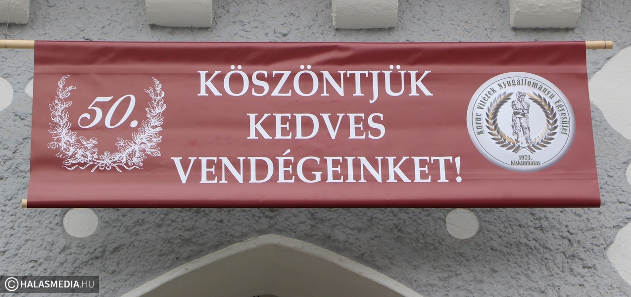 1973. november 15-én alakult meg Kiskunhalason a Kuruc Vitézek Nyugállományú Egyesület. Az 50 éves évforduló kapcsán rendezett ünnepséget a közösség a moziban. Ahogy azt a Kuruc Vitézektől megszokhattuk, ismét megadták a módját ennek. A főtérre érkezőket katonazenekar fogadta, így már rögtön megvolt az ünnepi hangulat. A jeles eseményt megtisztelte jelenlétével többek között a Honvéd Vezérkar Főnök képviseletében dr. Drót László dandártábornok, a a Magyar Honvédség Területvédelmi Erők Parancsnokságának parancsnoka, Hazuga Károly nyugállományú altábornagy, a Bajtársi Egyesületek Országos Szövetségének elnöke is. A moziterem teljesen megtelt, Romvári Frigyes egyesületi elnök rövid bevezetője után a Felsővárosi Általános Iskola diákja, Tímár Dávid szavalt.