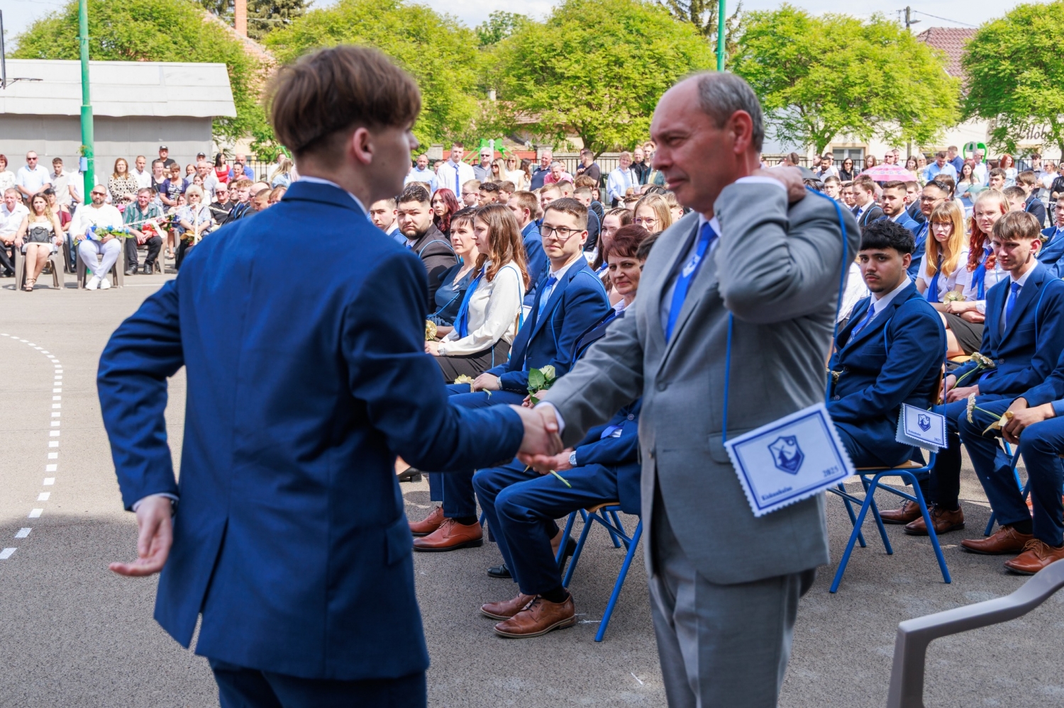 Dr. Komáromi Szilárd igazgató személyes hangvételű beszédben köszöntötte a végzősöket. - Ma, amikor elindultok az élet következő szakaszába, tegyétek ezt a tudatossággal és hittel. Higgyetek abban, hogy képesek vagytok felelősségteljes döntéseket hozni, és hogy minden cselekedetek számít. Legyetek büszkék arra, hogy felelősséget vállaltok a sorsotokért, munkaadóitok értékeiért, sőt életeiért és legyetek bátorabbak, mint valaha- mondta az intézmény vezetője. A beszédet követően ajándékot vehetett át Földi Emese (pincér-vendégtéri szakember), Gárgyás Martin (ács), valamint Parragh Péter (hegesztő) tanulók mentesülnek a szakmai írásbeli vizsga letétele alól, a Magyar Kereskedelmi és Iparkamara által megrendezett Szakma Kiváló Tanulója Versenyen elért eredmények alapján.
