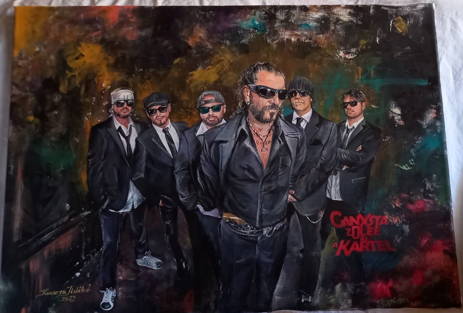 - Mikor lent voltunk játszani Kiskunhalason, találkoztunk Ildikóval, aki portrékat festett rólunk. Nagyon jól esett ez a gesztus tőle. Megismerkedtünk vele és az élethelyzetével, aztán elhatároztuk, hogy valahogy próbálunk segíteni rajta. Azt találtuk ki, hogy fessen a zenekarról egy csoportképet, amit utána mi feltettünk egy online licitre, a legmagasabb összeget ajánló licitálótól kapott pénzt pedig Ildikó kapta meg a lemezbemutató koncertünkön – nyilatkozta Ganxsta Zolee.