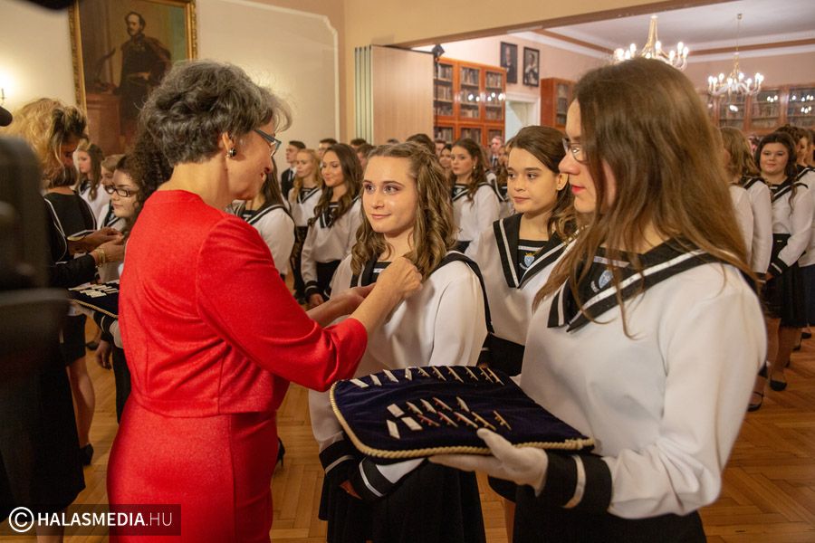 A szalagtűzés ünnepélyes pillanati délután öt órakor kezdődtek a gimnázium dísztermében. A fiatalok osztályfőnökeiktől kapták meg a szalagokat.