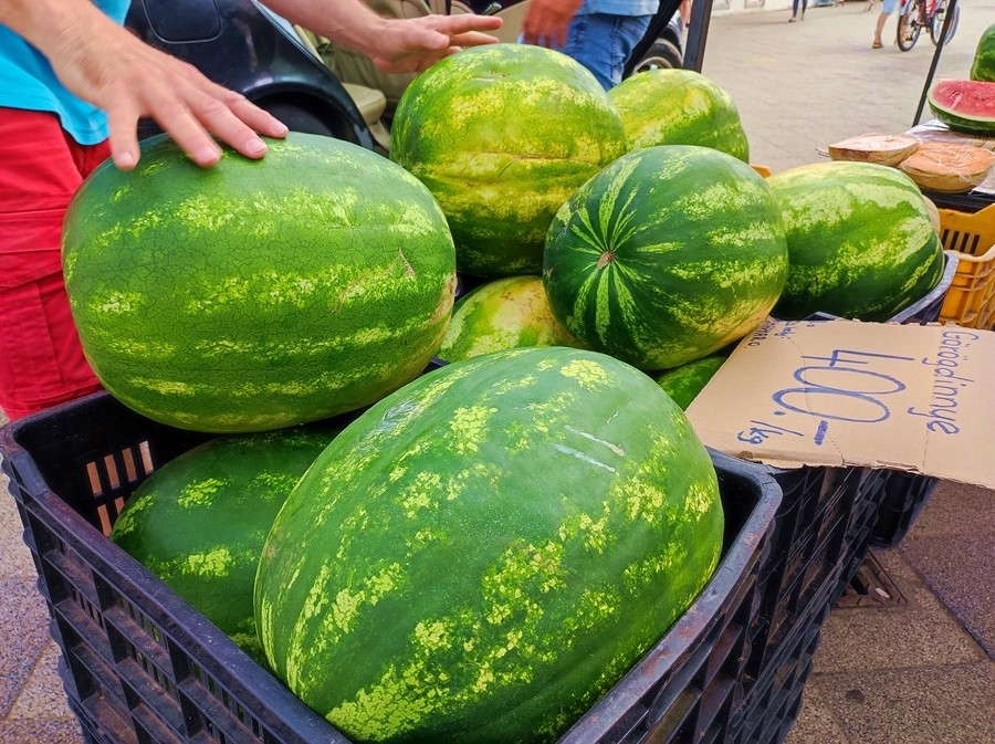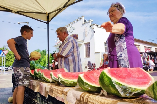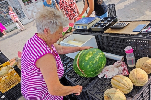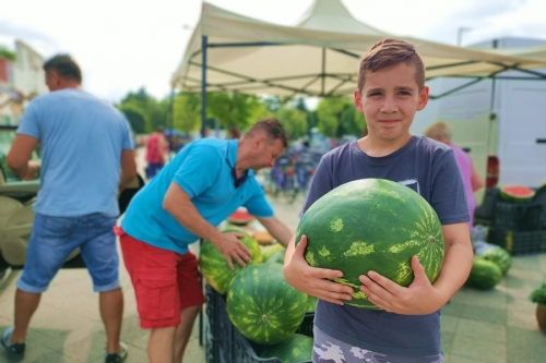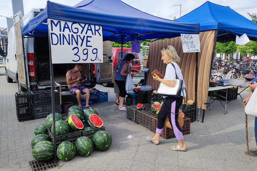 Sok dinnye talál gazdára szerdán és szombaton, a kiskunhalasi piacon. A vevők szerint ízletesek az idei magyar dinnyék. A kereskedők azt mondják, ebben a szezonban csak a kisebb dinnyék a népszerűek.