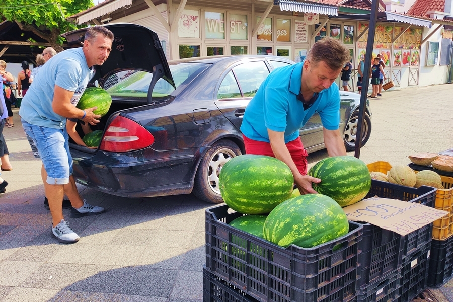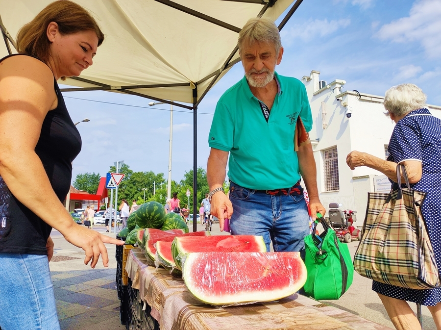 A legtöbb dinnyés standon nagy volt a forgalom ma reggel és délelőtt. A kereskedők azt mondják, folyamatosan csökken a dinnyék ára, szinte napról-napra kisebb szám kerül az ártáblákra. A tendencia pedig várhatóan folytatódni fog, így talán még többen vesznek majd dinnyét a halasi piacon is.
