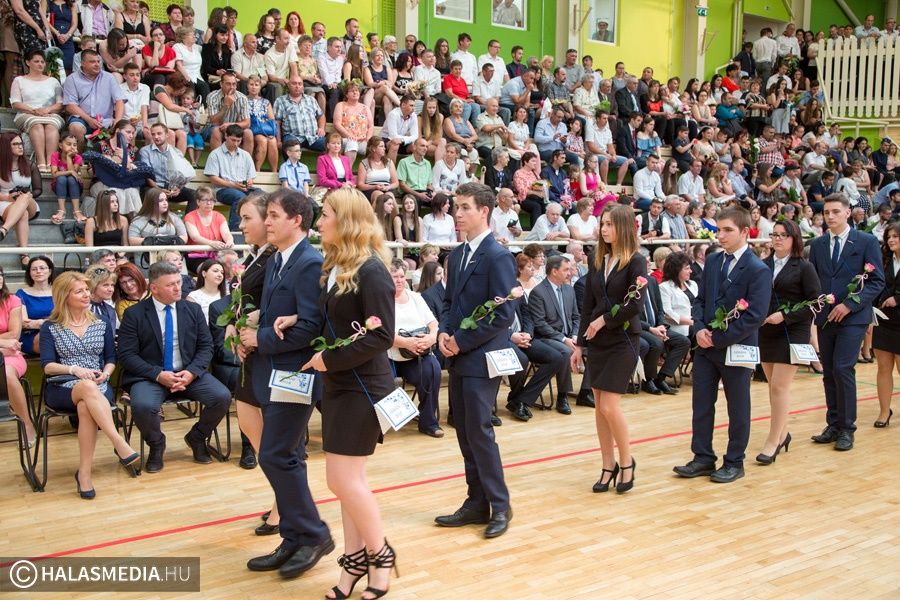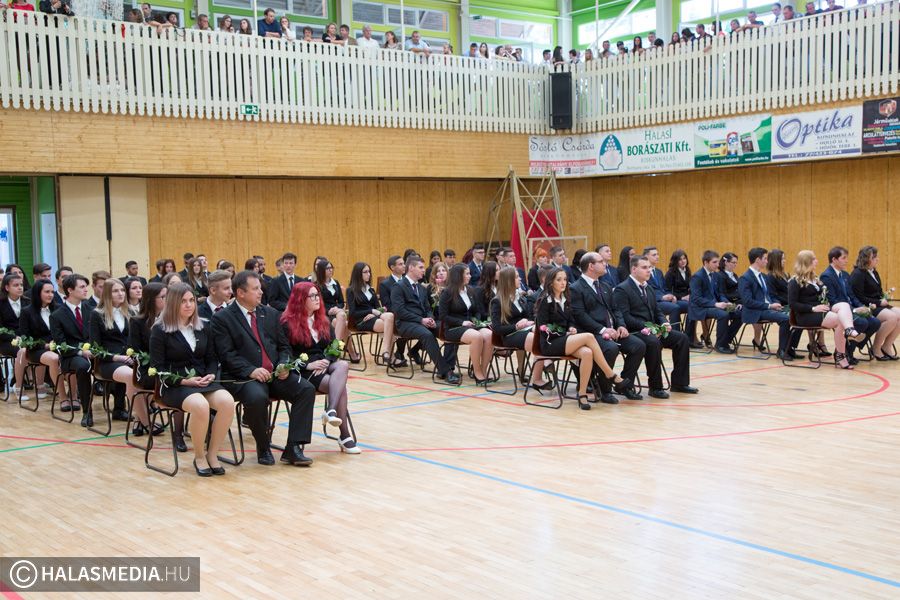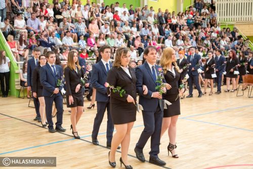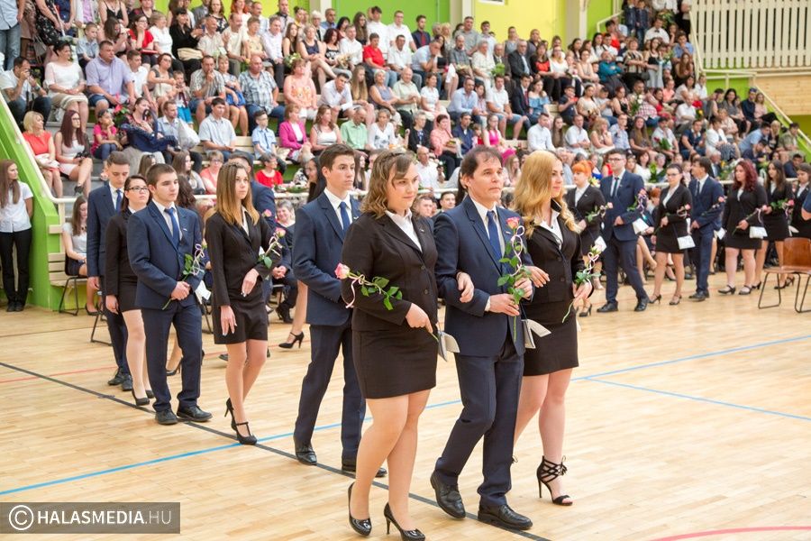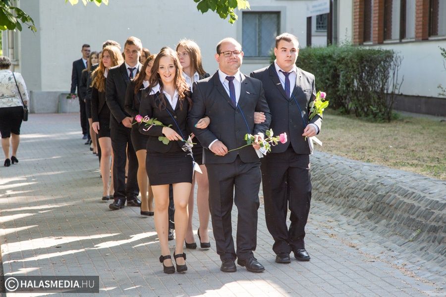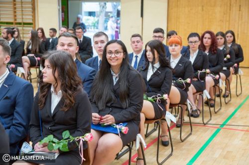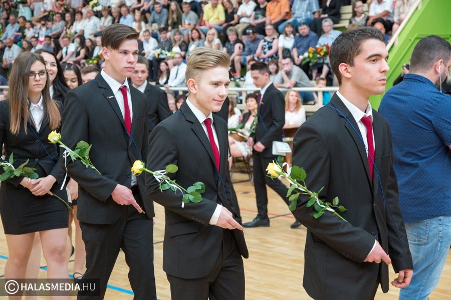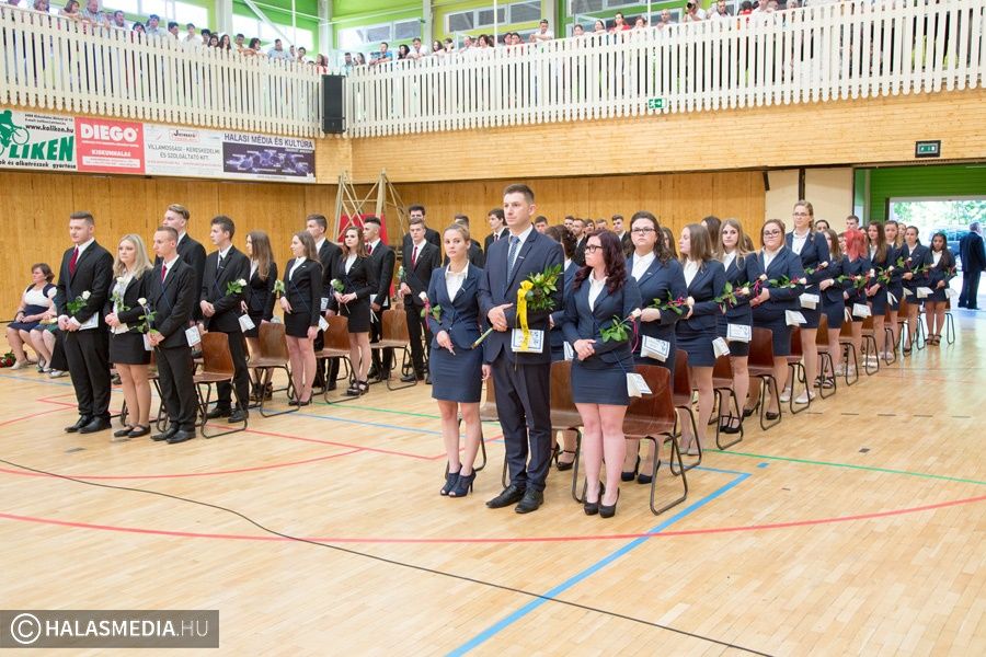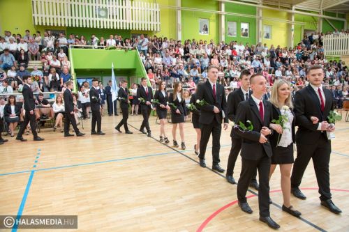 Teljesen megtelt szülőkkel, hozzátartozókkal, barátokkal, ismerősökkel a Dékáni-sportcsarnok. A középiskolák ballagásának sorát a Kiskunhalasi Szakképzési Centrum Dékáni Árpád Szakgimnáziuma és Szakközépiskolája zárta. Először az öt búcsúzó közösség érkezett az ünnepség helyszínére osztályfőnökeik vezetésével, majd az iskolazászlót hozták be a csarnokba. Malák Vivien a maradó diákok nevében, egy Márai-idézettel, Károly Renáta pedig egy köszöntővel búcsúzott el a ballagóktól. A végzősök gondolatait Kőszegi Viktória tolmácsolta.