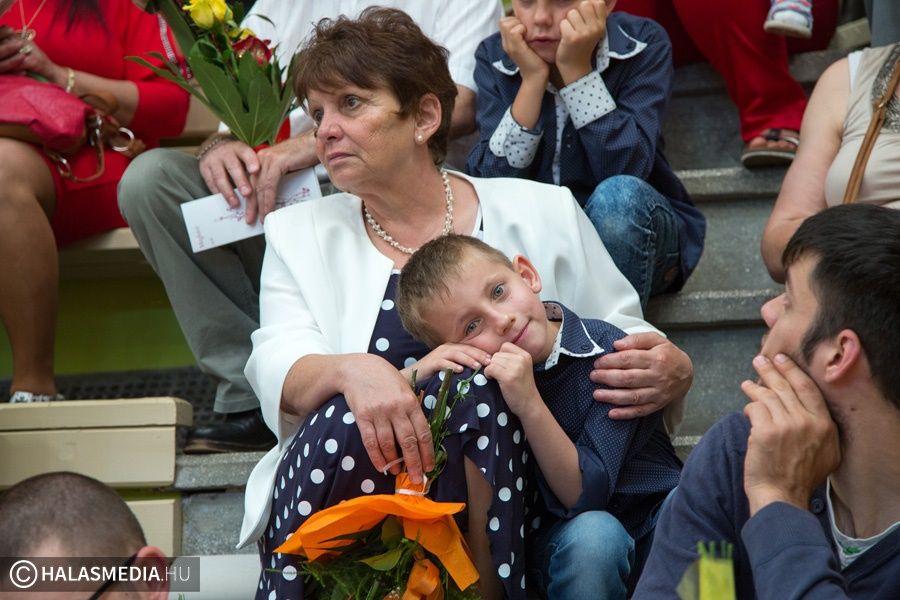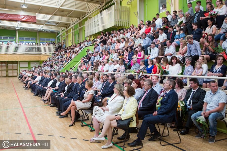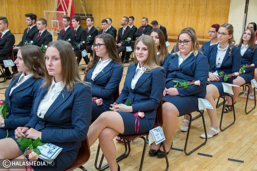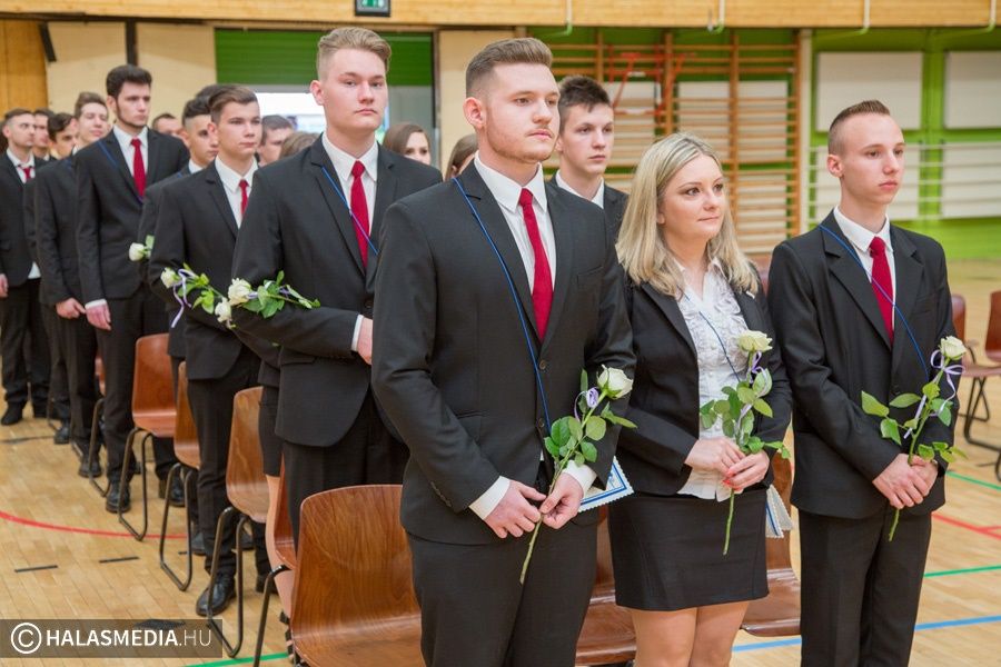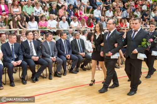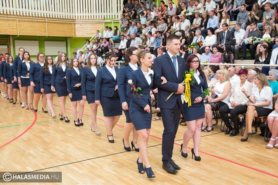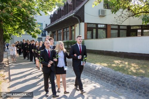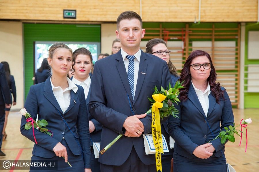 Teljesen megtelt szülőkkel, hozzátartozókkal, barátokkal, ismerősökkel a Dékáni-sportcsarnok. A középiskolák ballagásának sorát a Kiskunhalasi Szakképzési Centrum Dékáni Árpád Szakgimnáziuma és Szakközépiskolája zárta. Először az öt búcsúzó közösség érkezett az ünnepség helyszínére osztályfőnökeik vezetésével, majd az iskolazászlót hozták be a csarnokba. Malák Vivien a maradó diákok nevében, egy Márai-idézettel, Károly Renáta pedig egy köszöntővel búcsúzott el a ballagóktól. A végzősök gondolatait Kőszegi Viktória tolmácsolta.