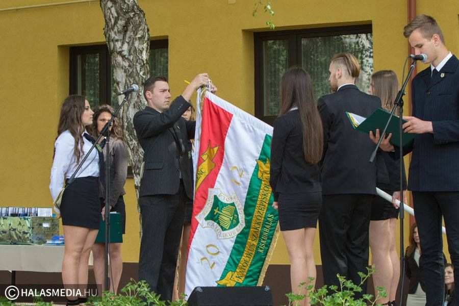 Az ünnepségen Téglás László igazgató köszöntötte a végzősöket és a jelenlévő vendégeket, majd dr. Finta József érseki helynök is beszédet mondott. A ballagás egyik leginkább várt pillanata mindig az, amikor kihirdetik, kik kapnak valamilyen díjat tanulmányi- vagy sporteredményeik jutalmazásaként. Az „Év diákja” címet 2017-ben Karsai Kitti (12.c) és Horváth Patrik (12.a) érdemelték ki. „Tehetséges diák” kitüntetést vehetett át Kovács Veronika Anna (12.c). A „Jó tanuló, jó sportoló” elismerést Honfi Benedek (12.a) és Honfi Dániel (12.a) kapták meg. Kiemelkedő kulturális tevékenységéért „Művészeti nívódíj”-at vehetett át Tóth Renáta (12.b). A valamely területen kiemelkedően teljesítő tanulókat „Vincit virtus” díjjal ismerte el a nevelőtestület. Ezt a címet idén a 12.c osztályból Kecskés Laura, Mihálovics Erika és Németh Gina, a 12.b-ből Szatmári Erna és Dudás Vanda, a 12.a-ból pedig Hegedűs Gergő, Papp Patrik, Frittmann Patrik és Döbrentei Dávid vehették át.