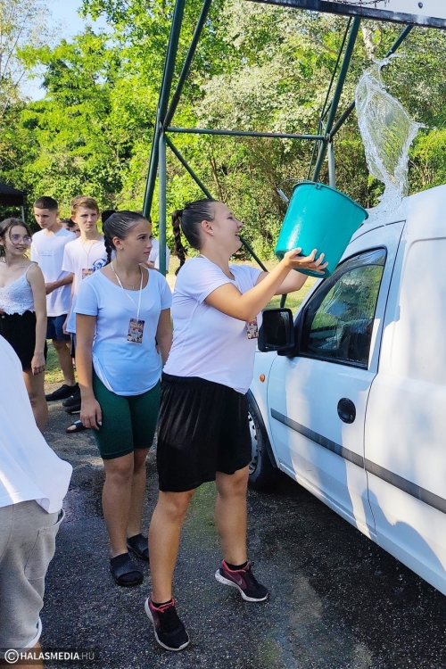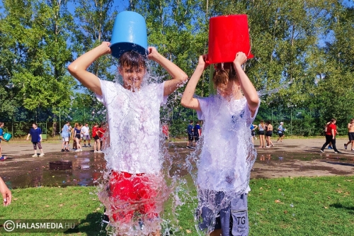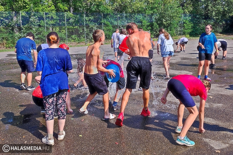 A gólyák az extrém kánikula miatt sok-sok vizes feladatot kaptak a tábor során. Legnépszerűbb persze idén is a vízibomba csata volt, ahol fiatalok és felnőttek egyaránt bőrig áztak. Akinek nem jutott bomba, slagból vagy vödörből kapott hűsítőt.