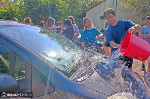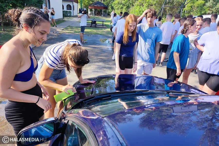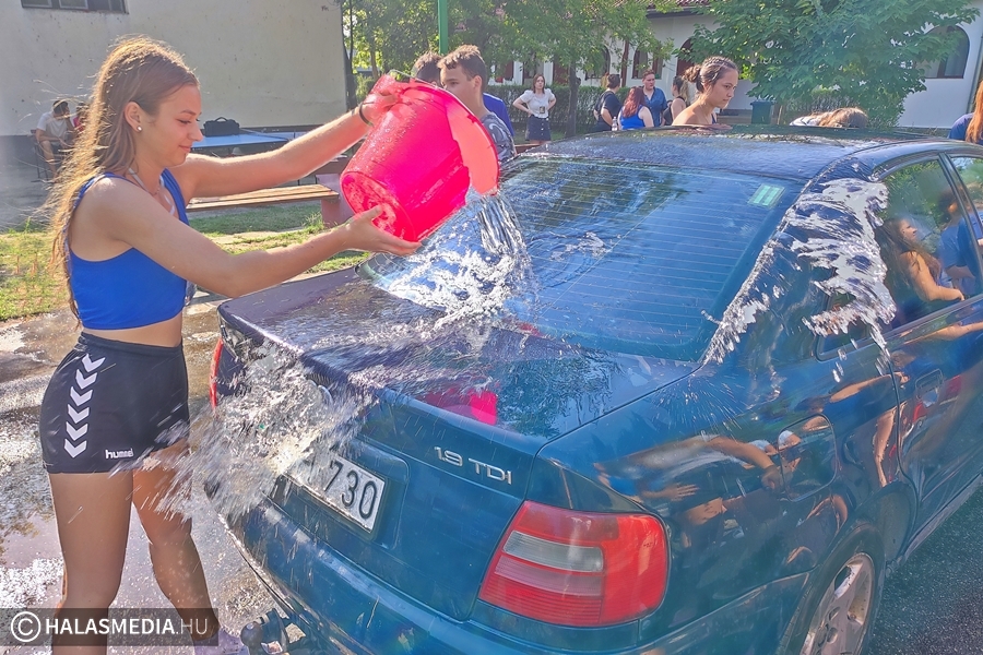Az autómosást is nagyon élvezték az osztályok. Egy meghatározott időintervallum alatt összesen hat kocsit kellett tisztává varázsolniuk a gólyáknak. Eszközök hiányában, a kreativitásukra kellett hagyatkozniuk.