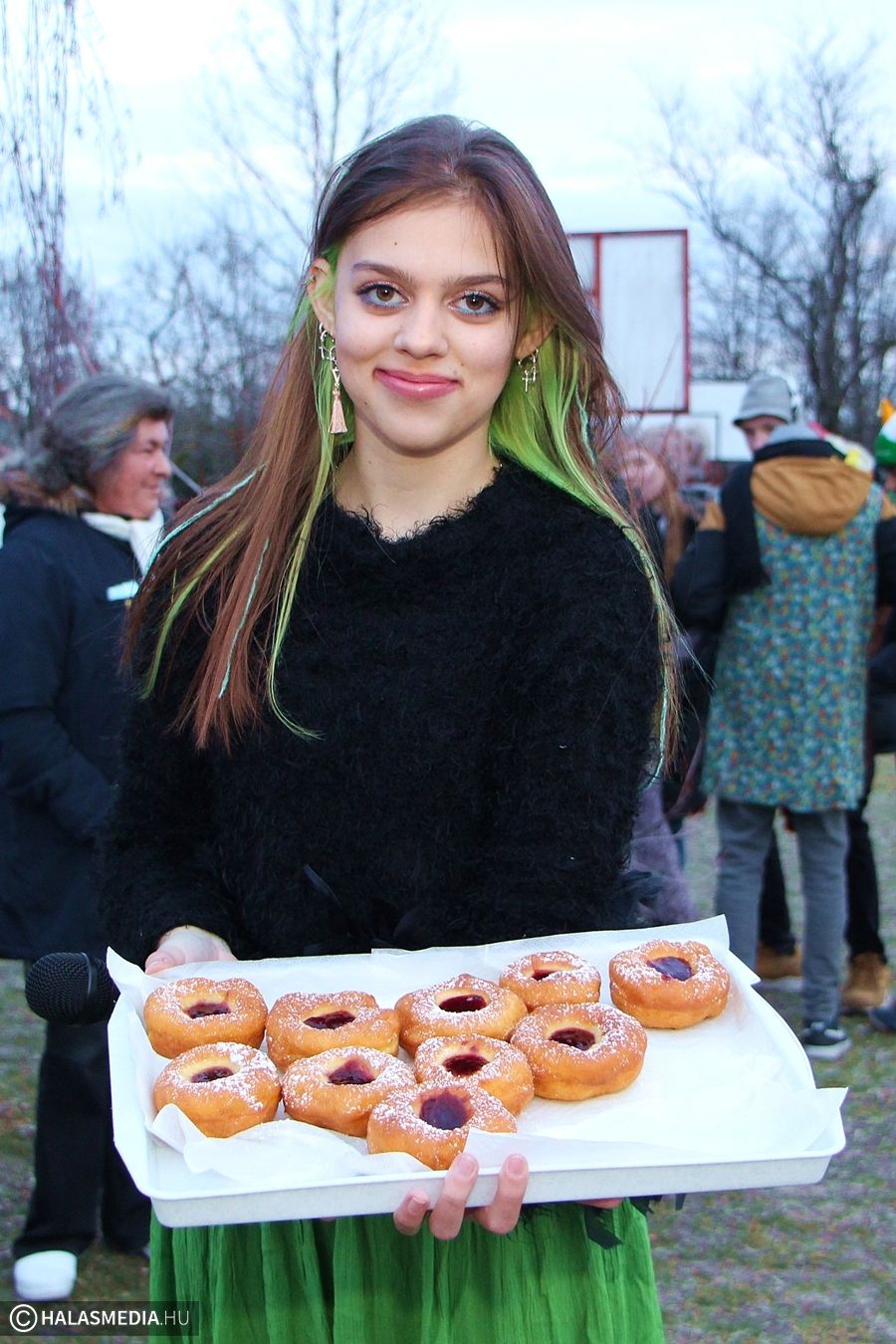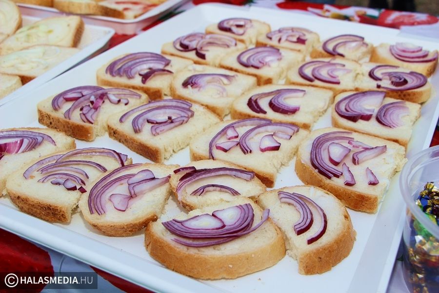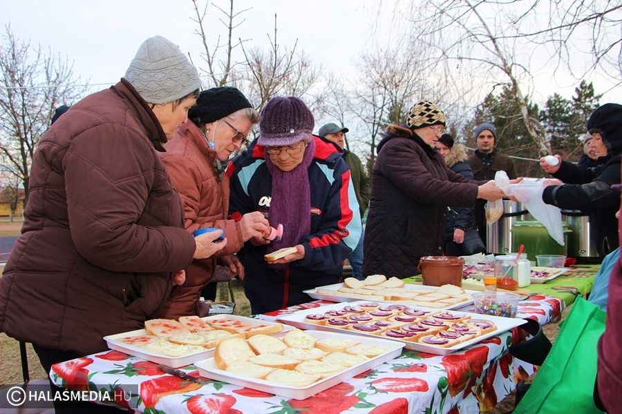 Természetesen a forró italok és a finomabbnál finomabb falatok sem hiányozhattak a kínálatból. Tea, forralt bor, pálinka, farsangi fánk, valamint zsíros kenyér várt az éhes télűzőkre.