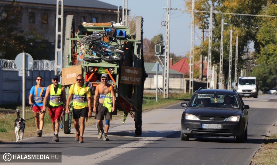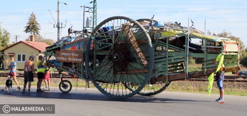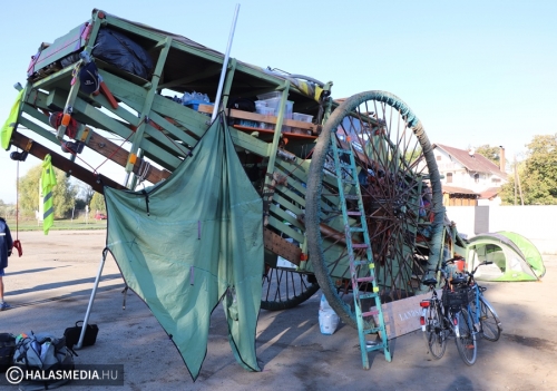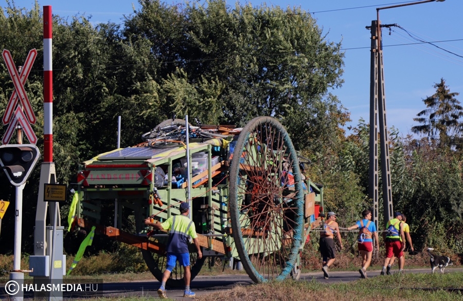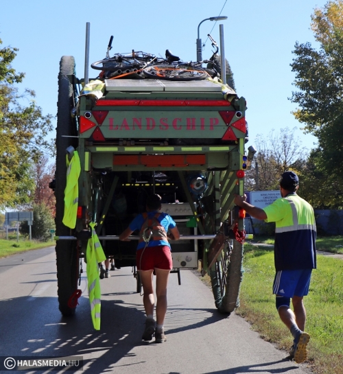 Egy 3,7 méter magas, csaknem 10 méter hosszú és 3,5 tonnás szekér járta a környéket az elmúlt napokban. Felbukkant Jánoshalmán, majd két napot Kunfehértón töltött, utána érkezett Kiskunhalasra, a Déli Városkapuhoz. A Landscipnek (szárazföldi hajónak) nevezett járművet kézi erővel vontatják lelkes fiatalok. A hatalmas szerkezeten mosógép, rádió és rengeteg, a mindennapi élethez szükséges eszköz van. Ahol elgurulnak, ott nem kis megrökönyödést vált ki a jármű, amelyet sokan fotóznak, a kezelőik pedig lelkesen mosolyognak, integetnek.