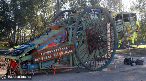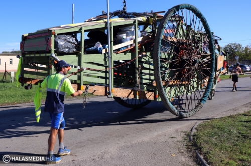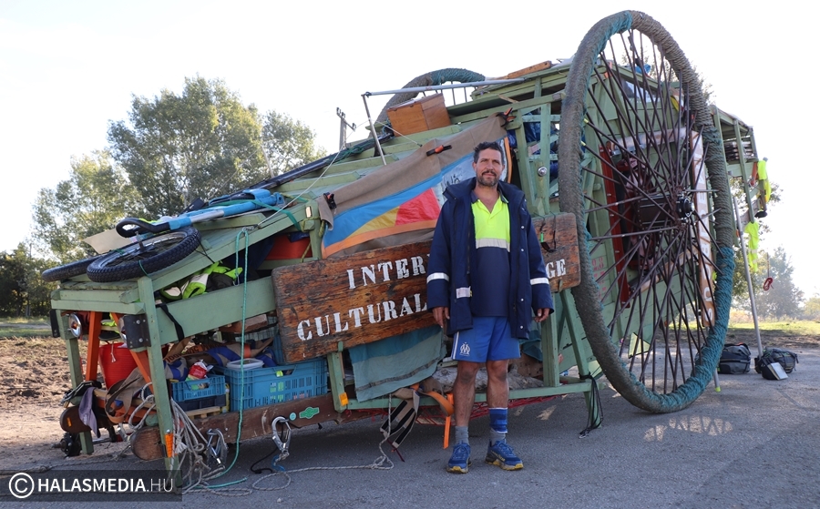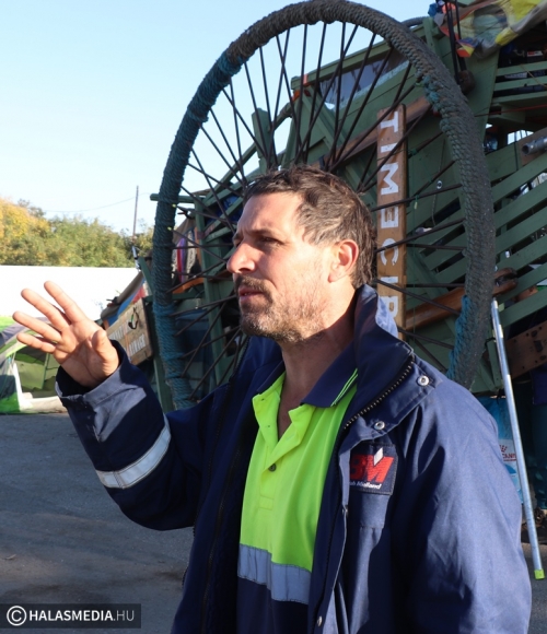 - Ez egy 3 ezer kilométeres utazás, amely 89 hónapig tart. Antwerpenből indultunk és a terveink szerint 2023 februárjában érkezünk meg Görögországba, az Athén melletti Elefsinába, az Európa Kulturális Fővárosa megnyitó ünnepségére. Az utunk során eddig is nagyon sok emberrel találkoztunk, ezek a nemzetközi összertartozást, barátságot is jelképeznek. A szárazföldi hajóval, amelyet magunk építettünk, naponta 6-7 órát haladunk. Mindannyian a Timecircus tagjai vagyunk, több, mint két évtizede ismerjük egymást. Kiválóan tudunk együtt dolgozni, a szekérrel haladás is közös tevékenység, többen elől húzzák, és néhányan hátul toljuk- mondta Bram Soli, a csoport tagja. A Landschip kedden késő délelőtt hagyta el Kiskunhalast.
