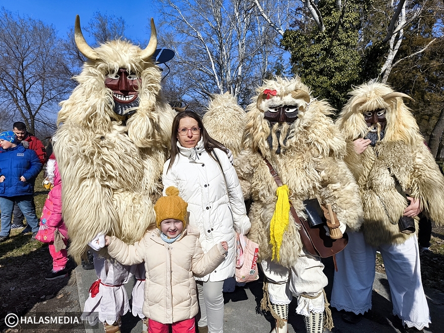 A nap leginkább várt része a mohácsi busók felvonulása volt. Az autentikus jelmezekbe, maszkokba bújt férfiak kereplőkkel, kolompokkal invitálták a halasiakat, majd jöhettek a télűző ágyúlövések. A nagy durranás nevű busócsoport tagjaival sokan fotózkodtak a tóparton.