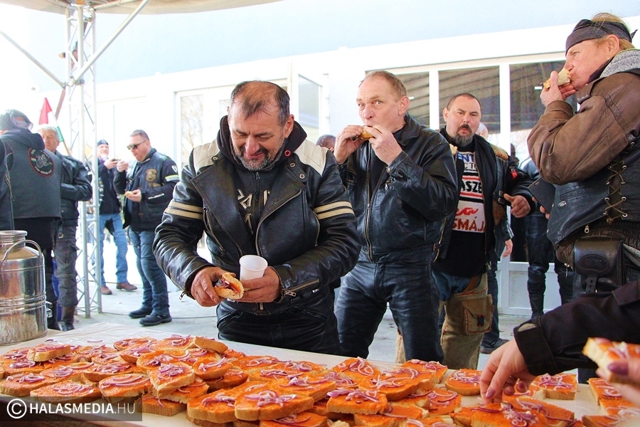 Természetesen a finom falatok sem hiányozhattak a rendezvényről. Ezúttal is ingyen lilahagymás zsíroskenyér várta a megfáradt, megéhezett motorosokat.