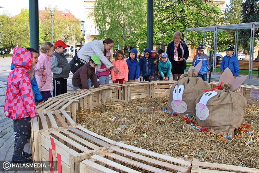 Kicsik és nagyok egyaránt csodájára járnak az új, ideiglenes főtéri látványosságnak. Hétfőn délután a Halasmédia csapata a Kreatív Tündér szakembereinek segítségével, a Kiskunhalasi Lovasbandérium támogatásával készítette el a nyuszifészket, melynél azóta sokan megálltak már, hogy egy-egy szelfit készítsenek.