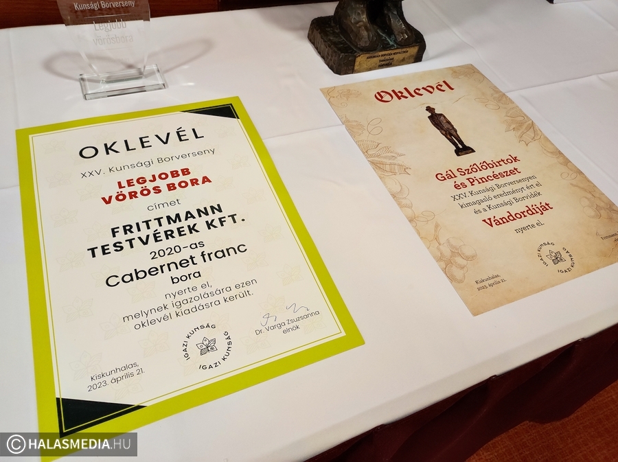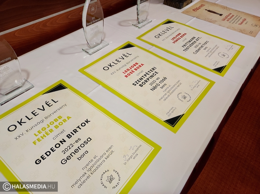 Az eseményen minden pincészetről elhangzott pár fontos információ. A díjazottak között volt halasi borászat is (Szerencsés Borház), az egyik legrangosabb trófea, a Kunsági Borvidék Hegyközségi Tanácsának vándordíja pedig Szigetcsépre került.