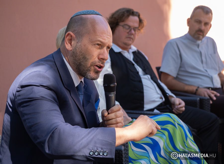 A szombaton kezdődött XXI. Kiskunhalasi Zsidó Fesztivál programja tegnap késő éjszakába nyúlt. Mint beszámoltunk róla, Arató András a legendás Arató Videó Discoval érkezett Kiskunhalasra, amely jó hangulatot és vitathatatlan népszerűséget adott a halasi rendezvénynek. Katt ide cikkünkhöz! Másnap, augusztus 24-én délelőtt 11 órakor más jellegű, komolyabb hangvételű program várt a fesztivál látogatóira, mégpedig a hagyományos Zsidó-Keresztény Párbeszéd.