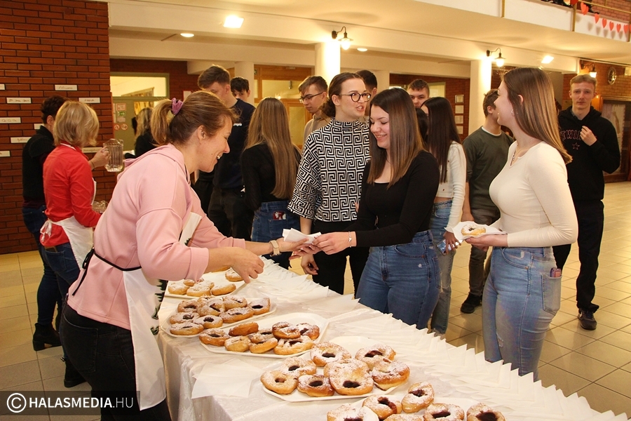 Több, mint 650 fánk készült egyetlen délelőtt alatt. Ma délelőtt rendezték meg a Bibó István Gimnáziumban a hagyományosnak számító Valentin-napi programsorozatot. A diákok szívhez szóló üzeneteket küldhettek egymásnak, az egyik szünetben pedig megválasztották a 2023-as Szívkirályt és Szívkirálynőt is.