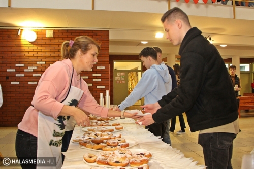 - Friss, meleg fánkkal várjuk a diákokat, amit áfonyalekvárral kentünk meg. E mellett teával is készültünk. Nagy örömmel fogadták a fiatalok a kezdeményezésünket, minden szünetben jönnek és fogyasztanak a finomságokból – tudtuk meg Kovács Erzsébettől, a szülői munkaközösség elnökétől.