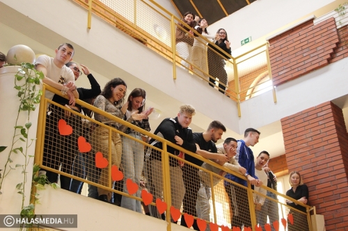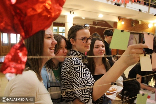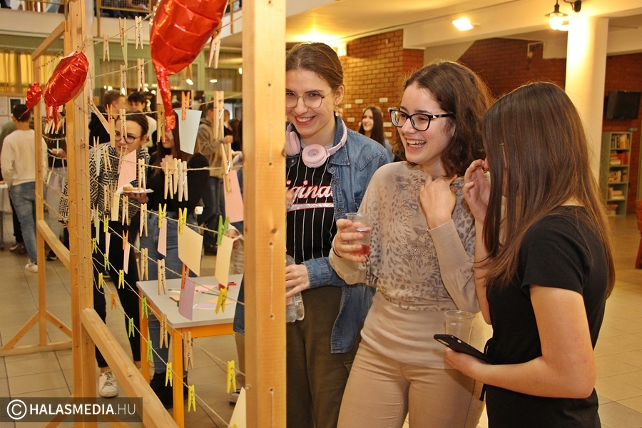 - A szerelmesek napját ünnepeljük ma. Próbáljuk minél változatosabbá, színesebbé tenni ezt a napot, hogy akár még a szinglik is ugyanúgy tudják élvezni, mint akiknek van párjuk – árulta el Lakos Larisza diákönkormányzati elnök.