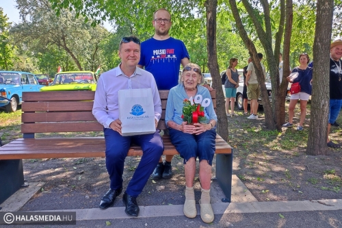 Az autósokat Fülöp Róbert polgármester köszöntötte. Elmondta, milyen nagy öröm, amikor ilyen különleges baráti társaságok látogatnak el Kiskunhalasra. A városvezető megcsodálta a járműveket, majd egy ajándékcsomaggal kedveskedett a program legidősebb, száz esztendős résztvevőjének, Edit néninek.