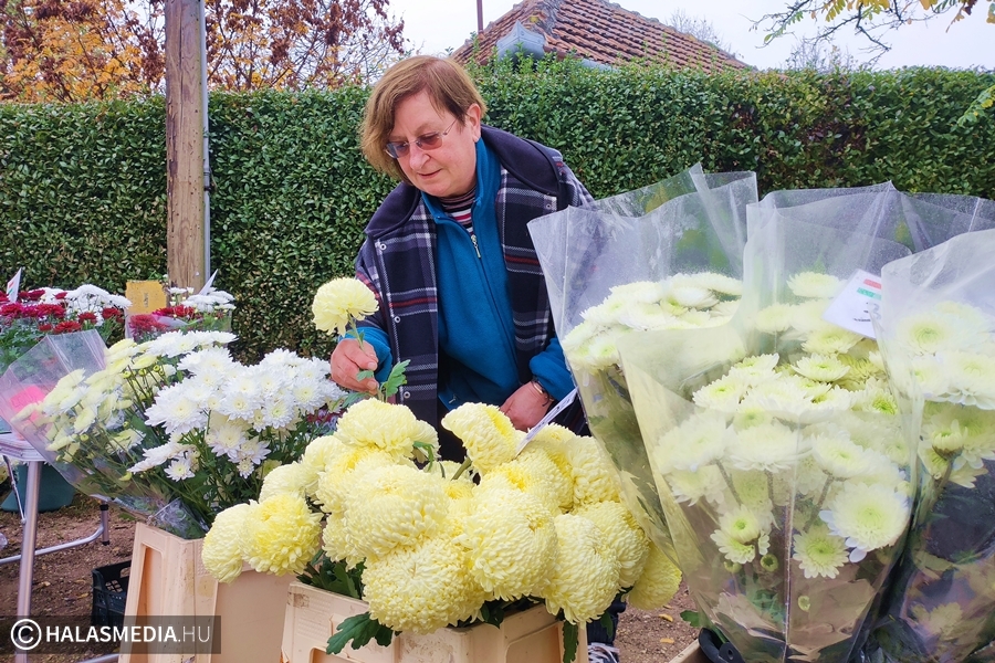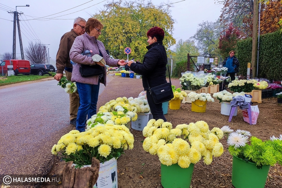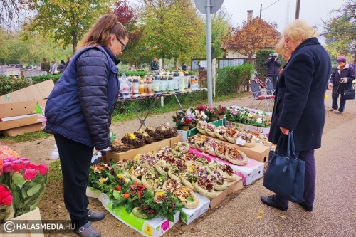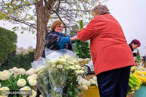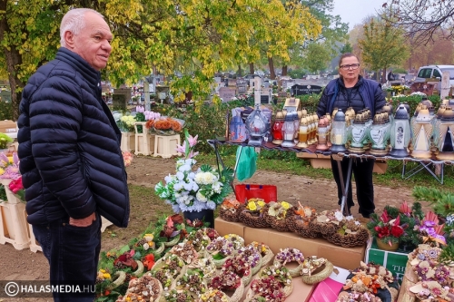 Virágot, mécsest, koszorút vásároltak az elhunyt szeretteik sírjához érkező halasiak a református temető bejáratánál. Vásárlás előtt mindenki alaposan szemügyre vette a kínálatot. A legtöbben elégedettek voltak a kihelyezett növények minőségével.