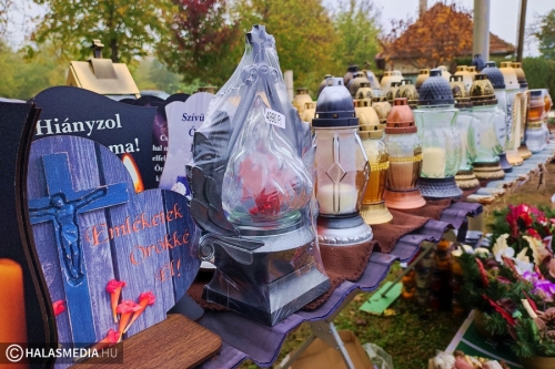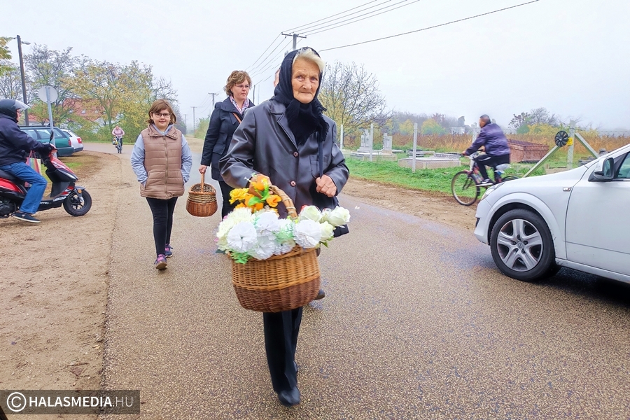 Az árusok már több napja a temetőkapukban kínátják a koszorúkat, virágokat. Azt mondják, a hosszú hétvége alatt eloszlott a tömeg. A legtöbben természetesen a mai napon, Mindenszentekkor látogattak ki a kiskunhalasi temetőkbe.