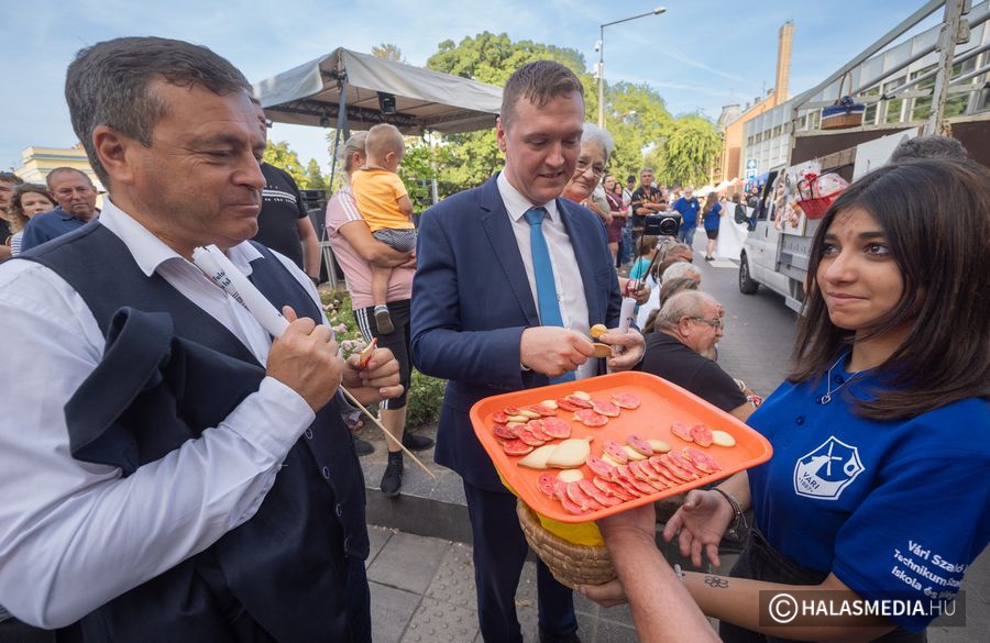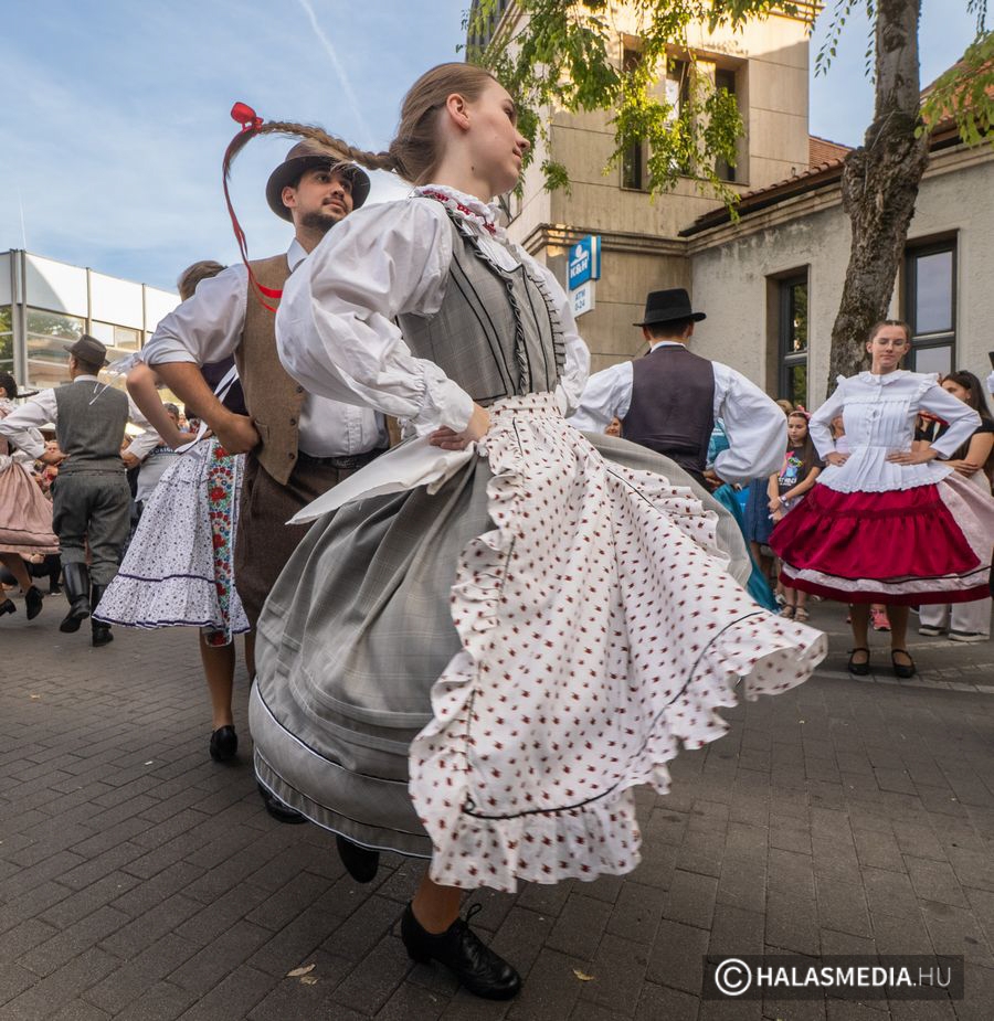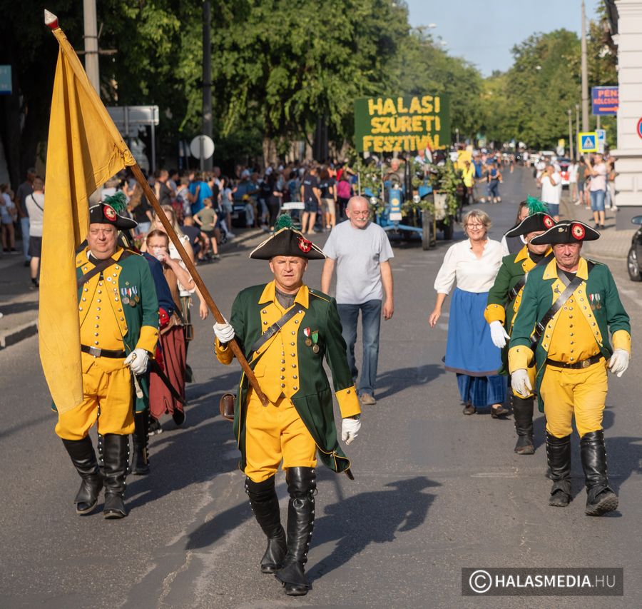 Harmincöt csoport, közösség és több száz felvonuló haladt végig a városon a 46. Halasi Szüreti Fesztivál legvonzóbb eseményén szeptember 13-án délután 16 órától. A szüreti menet nagyszámú nézősereget vonzott az utak szélére. A főutcán többször megálltak a csoportok megmutatva magukat. A Bethlen Gábor téri fesztiválközpontban néhány egyesület külön műsort kínált a bámészkodó és az üdvrivalgással, tapssal biztató sokaságnak.